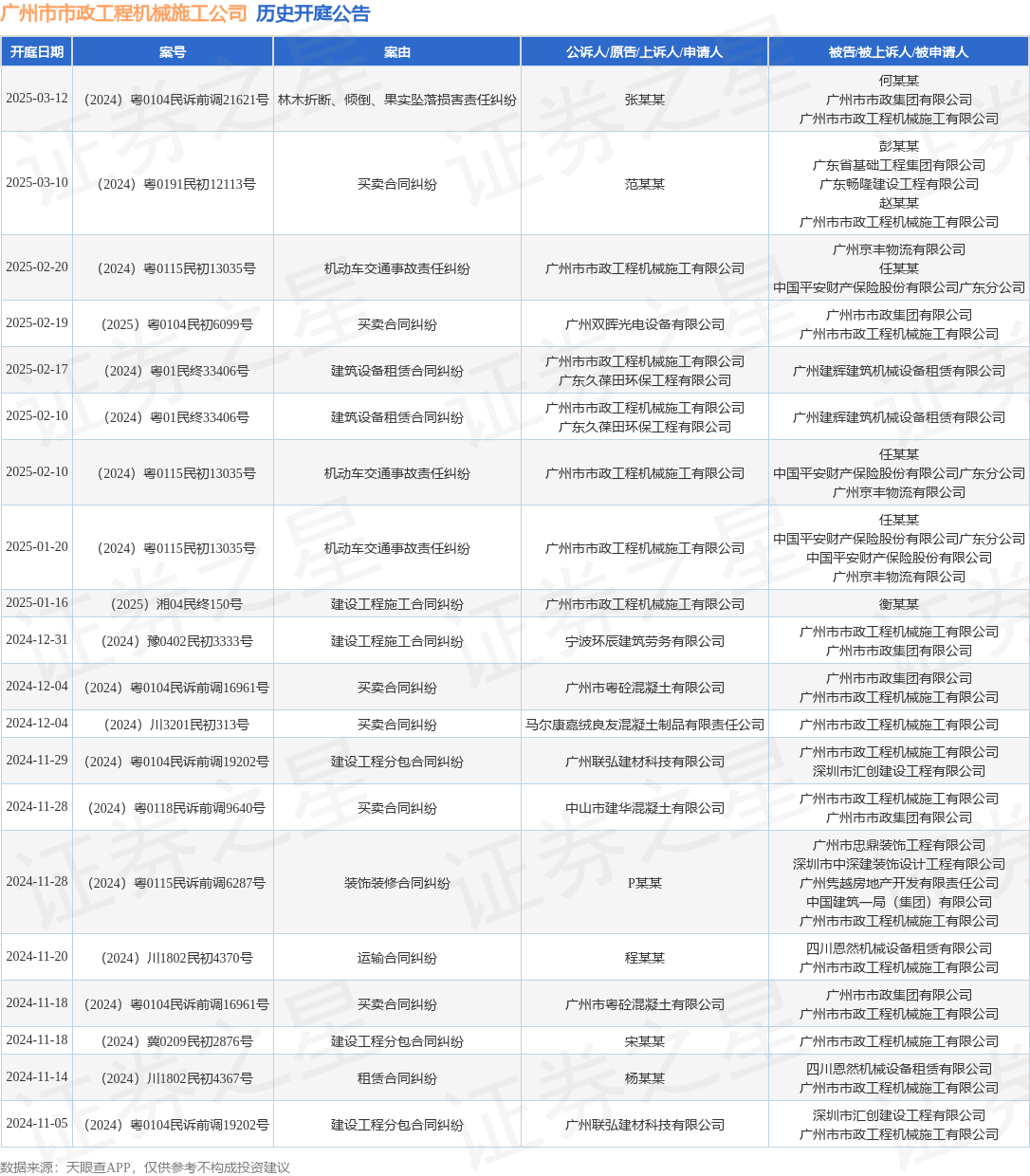 本站消息,根据天眼查APP显示,近日公布了一则广州市市政工程机械施工有限公司作为被告/被上诉人的开庭公告,详细内容如下: